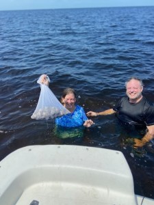 Captain Chris’ boat will accommodate up to 8 people. Over 6 gets a bit crowded but, can be done. It’s recommended that you have your own equipment but, he has some equipment in case it’s needed. He supplies fishing licenses for 4, ice and water. Feel free to bring your own drinks and snacks as well as sunscreen and sunglasses. If possible, wear bright clothing so you can easily be seen in the water. Cleaning of scallops is not included but Capt Chris will direct you to some local cleaning establishments if possible.